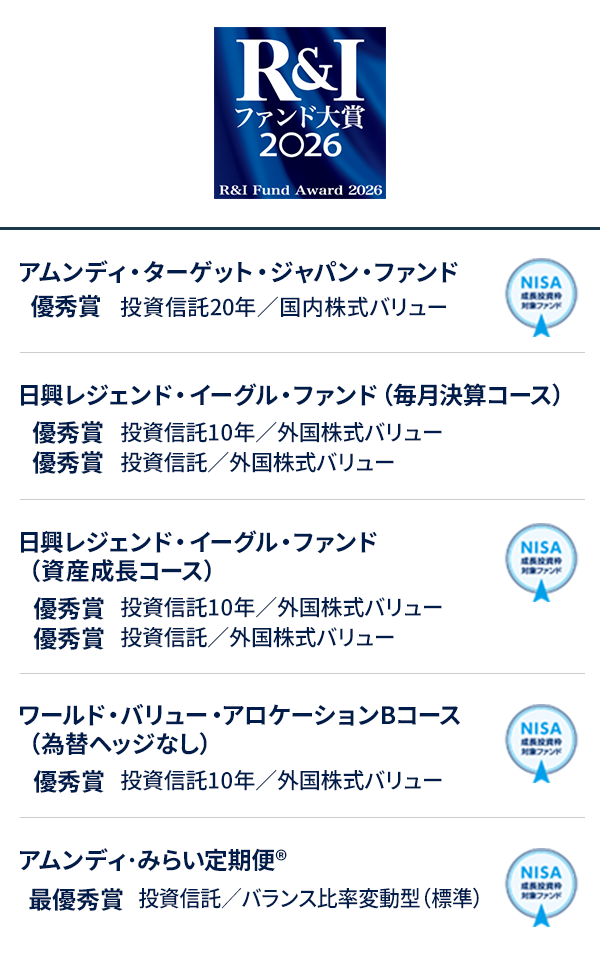 「R&I ファンド⼤賞 2026」投資信託部門において、下記のとおり各種ファンド賞を受賞いたしましたのでお知らせいたします。