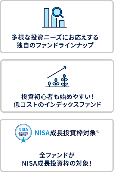 ※ 「NISA成長投資枠(特定非課税管理勘定)」の対象ファンドは販売会社により取り扱いが異なる場合があります。詳しくは販売会社にご確認ください。