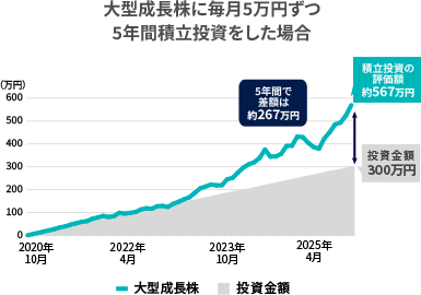 期間:2020年10月末~2025年10月末(積立投資は2020年10月末~2025年9月末)、月次。