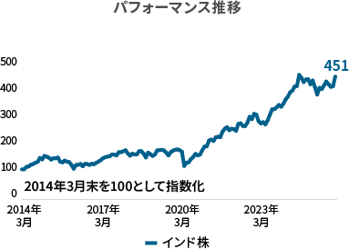 約14億人の人口を背景に成長が期待されるインドの株式市場は、2014年3月時点と比べて約4.5倍に拡大しています。
