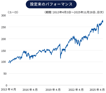 上記はファンドが投資する上場投資信託証券(ETF)が連動する運用成果を目指す「ユーロネクスト欧州戦略的オートノミー指数」の実績であり、当ファンドあるいは主要投資対象ファンドの将来の運用成果等を保証するものではないことに十分ご注意ください。使用した指数の権利はページ末尾をご覧ください。